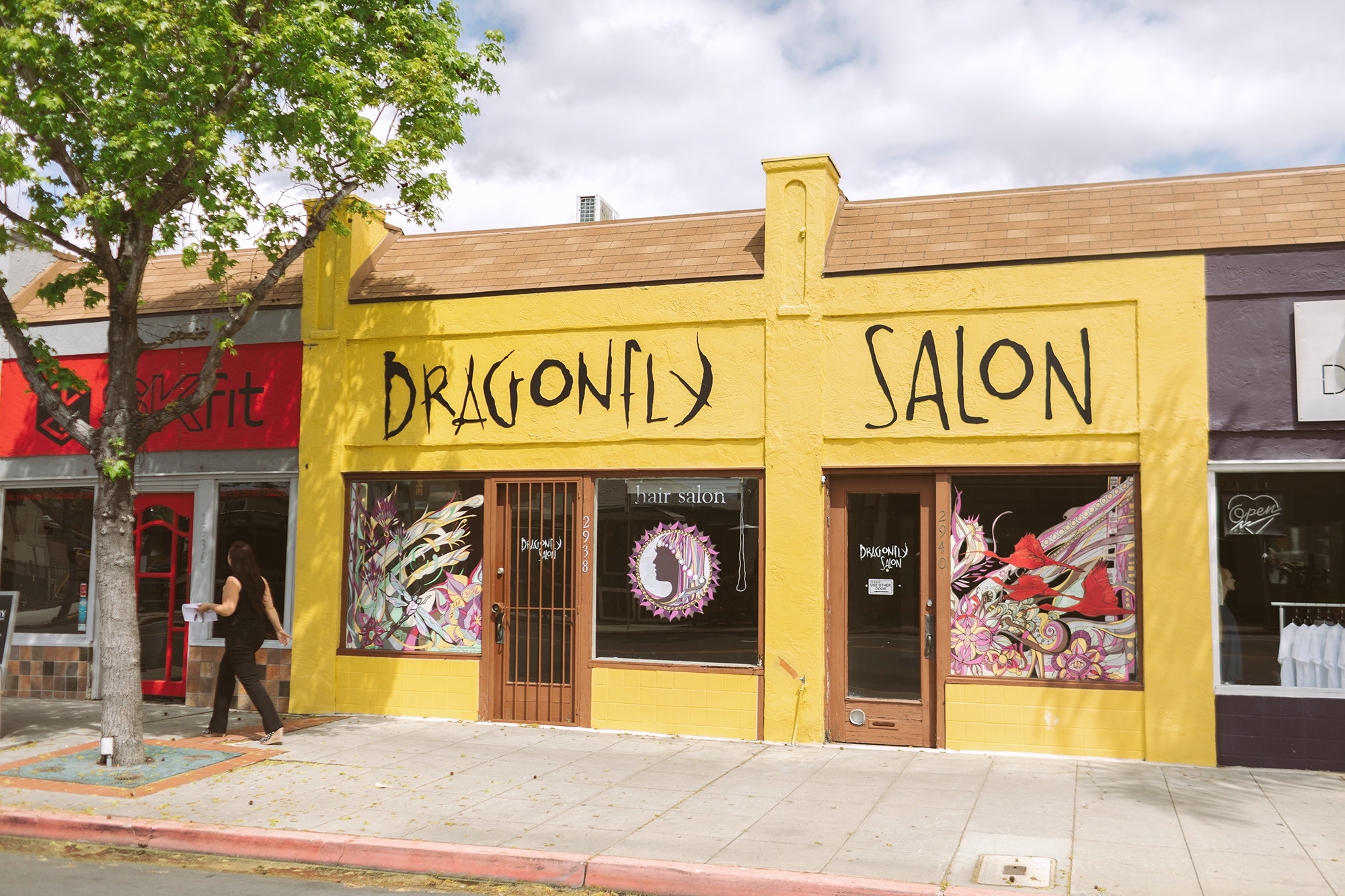Complete rebrand for North Park hair salon getting lost among new competitors. Created an Egyptian/art deco aesthetic inspired by dragonflies along the Nile - logo, hand-lettered signage, window graphics, business cards. I handled everything from design through production and installation to bring the vision to life on the building. The distinctive yellow storefront became a neighborhood landmark.